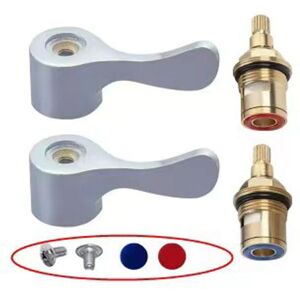 BRASS BODY: The faucet valves are made of premium brass and ceramic. Brass is resistant to high pressure, ensuring longevity and reliability.UNIVERSAL CONNECTIONS: G1/2, standard straight thread connections. The length of the faucet valve is 42mm. There are 20 teeth on the spline. Suitable for most double handle bathroom and kitchen faucets.GOOD SEALING - The faucet valve replacement has a black rubber locking washer which is easy to use, seals the faucet well, prevents the faucet from leaking. EASY TO USE: The lever handle can be operated easily (quarter turn) and smoothly even with wet and slippery hands. Our faucets are well made and have a smooth surface. It feels good and will not scratch your hand ALL HARDWARE INCLUDED: 2 x Faucet Cartridge (for cold and hot water), 2 x Handle, 2 x Screw.