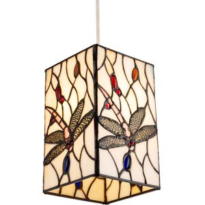 Beautifully hand-crafted dragonfly themed tiffany glass rectangular pendant lighting shade with open top and bottom. Features opal stained glass panels with intricate dragonfly design on each side including bright red and blue glass oval and circular beads. The glass looks stunning when light shines through. The product measurements are as follows - Height: 20cm, Depth: 13cm, Width: 13cm. Please note that ceiling rose and cable is not included - pendant shade only being sold. Complete with shade reducer ring allowing for all lamp bases - B22/BC, E14/SES and E27/ES. Maximum wattage allowed: 1 x 40watt (bulb not included). For indoor use only. On first use please wipe the shade with a dry cloth to clear any excess oil residue. Astoria Grand Colour: Green