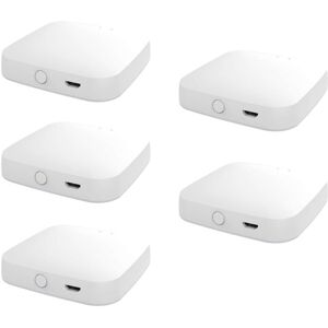 Feature: [Make Fingerbot Smarter]: Add smart hub link button pusher to Wi-Fi (support 2.4GHz) compatible with Alexa, Home and remote control. [Extremely Stable and Reliable Signal]: Single-point and mesh Bluetooth signal is stable enough with wide coverage and strong wall penetration ability. [High-Level Encryption Method]: The Bluetooth hub uses the industry's high-level encryption method to transmit information on WiFi and Bluetooth terminals to ensure the security of network communications and prevent malicious intrusions. [Multiple Devices Available]: The same network supports multiple devices to work at the same time to improve network reliability; Compatible with Tuya Smart APP ensures smart controls for Bluetooth devices on smartphones anywhere and anytime. [Note]: Only supports 2.4GHz Wi-Fi. Compatible with Tuya Smart APP, works with Alexa and Home. Specification: Product Name: Smart Bluetooth Gateway Input Power: DC 5V 1A Operating Temperature: -10~55°C Operating Humidity: