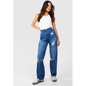 Straight leg fit for a classic silhouette Distressed detailing for an edgy, lived-in look High-rise waist for a flattering fit Button and zip fly fastening Designed for taller frames Make a bold statement with these eye-catching straight leg jeans from Boohoo. Perfect for the fashion-forward woman who loves to stand out, these jeans combine comfort with cutting-edge style. The distressed detailing adds a touch of rebellious charm, ideal for creating that coveted 'off-duty model' look. Pair with a crisp white tank top and trainers for a casual daytime ensemble, or dress them up with a silky blouse and heels for a night out on the town. The versatile straight leg cut ensures these jeans will become a staple in your wardrobe, easily transitioning from day to night. Whether you're meeting friends for brunch or hitting the dance floor, these jeans will keep you looking effortlessly cool and on-trend.