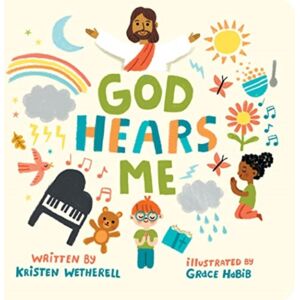 Interactive Board Book Teaches Children How to Pray in Every Circumstance Everyone is a theologian—even your little one.Each board book in the For the Bible Tells Me So series offers kids ages 0–4 an introduction to key facets of the gospel and a glimpse at the joy found when children embrace Christ as their Lord and Savior.In God Hears Me, author Kristen Wetherell teaches children how to talk with God—a heavenly Father who intently listens to his beloved children. This board book uses repetition, easy-to-understand language, and interactive elements to keep kids engaged and coming back again and again.Formatted for child interaction, the text provides a line for the caregiver to read and a responsive action for the child to perform.Deeply rooted in Scripture, Wetherell teaches children the importance of depending on Christ through prayer and praising him through all of life’s circumstances. Teaches Kids the Importance of Prayer: Little ones learn who God is and the comfort found when they depend on him through prayer Created for Kids Ages 0–4: Thoughtful language, colorful illustrations, and interactive elements keep kids engaged For the Bible Tells Me So Series: Each book in this series teaches kids the gospel through an important biblical doctrine Makes Great Gifts: Perfect for children, grandchildren, loved ones, or a church ministry