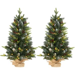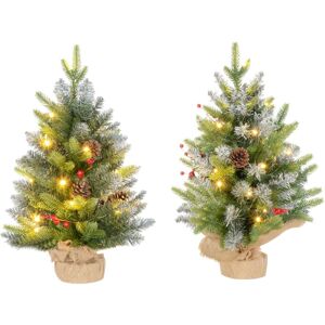 Christmas spirit, doubled with this set of two prelit christmas trees. With snow-brushed tips, red berries and pine cones, the trees are already dressed and can be set up how they arrive; add your own decorations for a personal touch. Each Christmas tree with lights gently illuminates your space, looking beautiful in the dark. Set up is easy too, taking about ten minutes, you just need to shape the branches into place. HOMCOM 2 Pieces Prelit Christmas Tree Tabletop Xmas Tree with LED Lights, Concrete Base in Green Size: 3ft