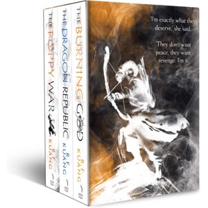This collection features the novels in her historical military fantasy trilogy—The Poppy War, The Dragon Republic, and The Burning God—a complete epic inspired by the bloody history of China’s twentieth century and filled with treachery and magic. Free map included. The Poppy War A war orphan, Rin earned her place in Nikan’s most elite military school.There, she discovers her lethal, unearthly power of shamanism—and learns that gods long thought dead are very much alive.When an inevitable conflict arises between longtime enemies the Nikara Empire and the Federation of Mugen, Rin realizes her shamanic powers may be the only way to save her people.But as she finds out more about the god that has chosen her, the vengeful Phoenix, she fears that winning the war may cost her humanity… The Dragon Republic After committing an atrocity in battle, shamanic warrior Rin is consumed with guilt, an opium addiction, and the murderous commands of the fiery Phoenix god.Channeling her anger against the Empress who betrayed Rin’s homeland, she chooses to join forces with the Empress’s enemy, the Dragon Warlord.But as Rin discovers the true natures of the Empress and the Dragon Warlord, the temptation to unleash the Phoenix’s fearsome power grows—and so does her vengeance… The Burning God After saving Nikan from foreign invaders and battling the evil Empress in a brutal civil war, Rin realizes that her homeland’s real power lies with the millions of common people who thirst for vengeance and revere her as a goddess of salvation.Vowing to defeat all who threaten the shamanic arts, Rin’s power and influence grows—but so does the Phoenix’s intoxicating voice urging her to burn the world and everything in it…