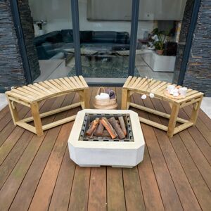 Make the most of your garden during the cooler evenings with the Forest Curved Wooden Firepit Bench (2 Pack) 6â8 x 2â6. Contemporary and Versatile Firepits are a popular way to spend more time outdoors with friends and family after the sun sets, when colder temperatures would typically force us to retreat inside. But a firepitâs nothing without somewhere to relax and enjoy its warmth, and thatâs where a product like the Forest Curved Wooden Firepit Bench comes in. Beautifully crafted from pressure-treated wood, the firepit bench boasts a minimalist, contemporary design. Each bench will comfortably seat up to two people and the space underneath the seat serves as an effective log store. Simply pair the bench with an eye-catching firepit to create a real statement piece in your garden. One of the best features of this curved wooden bench is its versatility. Not only will multiple benches fit neatly together to form longer curves or a complete ring of seating, but they can also be configured in different ways to create seating arrangements for small gatherings and large parties alike. Pressure-Treated Timber Pressure treating the wood helps to ensure its longevity and allows us to offer a 15-year anti-rot guarantee. This means you can be safe in the knowledge that your investment will withstand the elements and last for many seasons to come. Delivery and Assembly Free shipping is available to most UK postcodes. The benches will be delivered in flat-pack format along with comprehensive instructions for easy self-assembly. Key Features Versatile and beautifully craftedDesigned to border a firepitOne bench comfortably seats up to two peopleMultiple benches can be paired together15-year anti-rot guaranteeManufactured from pressure-treated woodPack of two benches