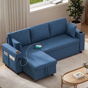 Experience the perfect blend of style, innovation, and practicality with our elegant corner sofa bed. Designed for modern living, this versatile L-shaped sectional features remote-controlled LED lighting on both armrests, offering 358 customisable modes to set the ideal mood for any occasion. In seconds, it effortlessly transforms into a spacious bed—ideal for hosting guests or compact living spaces. Practical touches include built-in USB and Type-C charging ports, convenient cup holders, and hidden storage beneath the reversible chaise. Crafted with a robust wood and metal frame, premium high-density foam, and soft linen upholstery, it promises exceptional comfort and support—all while supporting up to 400kg. The ultimate solution for contemporary comfort and effortless entertaining. 17 Stories Upholstery Colour: Blue