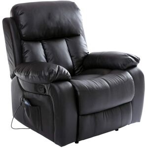 Heated massage chair with manual recline and built in footrest Although this very comfortable bonded leather armchair can be used for gaming or watching TV, it is particularly suited to those who need support for their back or find it hard to relax. The soft foam padding in the backrest and headrest offers just the right balance between comfort and support. And the comfortable padded armrests help you choose a position that offers complete relaxation for your arms. The backrest can be reclined to a comfortable position by releasing the latch below the armrest. The footrest is also raised using the sturdy latch mechanism. The attached controller lets you heat the base of the backrest to warm the muscles in your lumbar region. You can also choose to have a soothing massage of your upper and lower back, thighs and calves. This vibration massage is provided by eight inbuilt pads that are placed at strategic points in the chair to offer relief to tired or aching muscles. The controller for