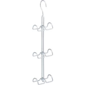With this bag organiser, you not only have your handbags neatly and space-savingly stored, but also a good overview of the selection. Up to 6 bags find space on the bag hanger and can be hung on the clothes rail in the wardrobe or on the coat rack. The handbag holder is made of robust metal and designed in stylish black. Create order in your evening bags, tote bags and shoulder bags with the bag holder. Purse rack in detail - Total dimensions H x W x D: approx. 39.5 x 8.5 x 4.5 cm - Dimensions per hook W x D: approx. 4 x 5 cm - Distance between hooks: approx. 10 cm - Weight: approx. 0.2 kg - Load capacity: approx. 8 kg - Material: Iron - Colour: Black - Set of 4 Handbag organisers - For storing up to 6 handbags each - Store bags in the wardrobe to save space - Also for belts, ties, scarves and other accessories - Always have a selection of handbags in view - Made of sturdy metal Included in delivery - 4x handbag hangers - Decorative items are not included in delivery