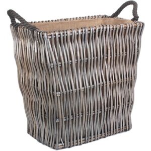 Finished in Full antique wash finish willow log basket with a hessian lining and rope handles. Attractive looking . High Quality, Well made Basketware. Natural product so dimensions can vary slightly. Manufactured from sustainable materials. Colours and finish could vary. Size Depth 30 x Height 48 x Width 49cm Weight 2.1kg Material Wicker Red Hamper Wicker Grey Rectangular Log Basket in Brown