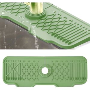 Automatic Drain: Our faucet splash guards feature different textures to optimize water flow. When you wash your hands or dishes, overflowing water automatically flows from the drain mat into the sink, significantly reducing the amount of water running into corners and onto countertops, resulting in a cleaner, tidier countertop. Easy to Clean: Compared to traditional mats, this splash guard is made of food-grade silicone, which is odorless, non-deformable, soft to the touch, tear-resistant, and reusable. Plus, it's easy to wash by hand or machine. Just rinse and it's clean. Accelerated Flow: This faucet splash guard is designed with three different textures that can be paired with different products, accelerating water drainage and effectively inhibiting bacteria. Secondly, its steep slope design also accelerates water flow, preventing water from pooling on the mat and compromising the product's lifespan. Multifunctional: This faucet mat has a reinforced backing, making it less likely