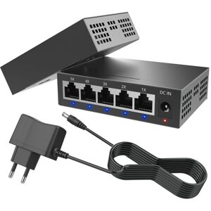 Rate:10M/100/1000Mbps Power Input: DC 5V/1A Standard protocol: AEE802.3,u,x Interface:5 Ports RJ45 Plug Type:EU Plug,it applies to Indonesia, Germany, France, Spain, Italy and so on Voltage: AC220V Plug Type:US Plug,it applies to Canada, India,Mexico, Thailand, the United States, the Philippines,Taiwan and so on. Voltage: AC110V Color: black Material: Metal The appearance may be slightly different due to different factory batches, but it will not affect the use Package Contents: 1 x Gigabit Industrial Switch 1 x Power Adapter Only the above package content, other products are not included. Note: Light reflection and different displays may cause the color of the item in the picture a little different from the real thing. The measurement allowed error is +/- 1-3cm.
