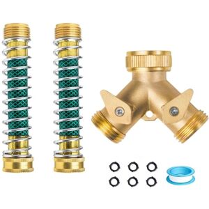 Two Way Hose Splitter is crafted from high-grade solid brass, ensuring durability and resistance to rust and corrosion. Compatible with all standard garden hose connections, it's designed to last a . Featuring heavy-duty brass on/off valves, our Y Hose Splitter offers precise control over water flow for each connection. Easy-grip valve levers hassle-free operation. Brass-textured connectors with precisely threaded ends easy attachment to 3/4Inch brass Faucet Splitters and standard hoses. Additionally, a brass hose splitter allows for hassle-free multiple hose connections, enhancing overall convenience. Our Faucet Splitter 2 Way boasts superior quality with a coiled protector adapter that withstands high water pressure without breaking, rusting, or corroding. -duty metal spring prevents and strain, extending the hose's life. Solid brass fittings a watertight seal to prevent leaks and maintain even water flow. Easily control water flow for tasks like watering plants, flushing floors,