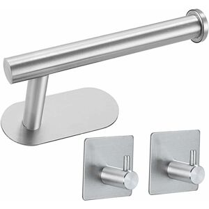 Material: High quality SUS304 stainless steel, silver. 【Product】 Self-adhesive toilet roll holder, 2 coat hooks, hooks for hanging towels, coats and other items. Ideal for bathroom, toilet and kitchen. Easy to install: without drilling, does not damage the wall. Remove the protective film and stick on a clean and smooth surface. 3M adhesive, the maximum load capacity can reach 4 kg. Instructions for use: the product is not suitable for limestone walls, wallpaper or painted walls. Only smooth surfaces such as glass, ceramic tiles, mirrors, metal surfaces, etc. Let it sit for 24 hours to ensure better adhesion.