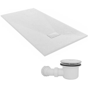 Features: Durable Construction: SMC materials are known for their strength and resilience, making the shower tray highly durable and long-lasting. Elegant Appearance: The stone pattern provides a sophisticated look, adding a touch of luxury to any bathroom setting. Non-Slip Surface: Designed for safety, the textured finish helps prevent slipping, ensuring a safer showering experience. Lightweight Design: Despite its robust make, an SMC shower tray is lightweight, making installation easier and more manageable. Easy to Clean: The smooth, non-porous surface prevents the accumulation of grime and is easy to maintain, enhancing hygiene. Eco-Friendly: SMC materials can be produced using environmentally friendly processes, making it a sustainable choice for conscious consumers. Specification: -Tray Type: Rectangle -Colour: White -Material: SMC -Non-Slip surface -Height: 32mm -Length: 1700mm -Width: 900mm -Waste Hole Size: 90mm -Waste Location: Side of Tray -Drain Cover Size: 20x12cm