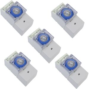 Mechanical Time Switches Manual/Automatic Control SUL181h AC220V 16A Circle Time Setting with 24 Hours The mechanical timer is suitable for heater, water dispenser, street lamp, stair lamp, advertising lamp box, breed aquatics, irrigation, office power automatic control, anywhere time control is needed in civil, household or industrial sectors, etc. It can set 48 programs to control ON or OFF of an electrical appliance in 24 hours. It can be programmed to avoid the power peak and distribute the power within the specified time to save energy. This timer is a kind of module for DIN guide rail, easy to install in lighting box, and compact size and beautiful shape. Its time base component is a synchronization pulse motor and it is strong anti-jamming, low power consumption with stable performance. By manual or automatic control Operating voltage: 230V 45 - 60Hz Output: 250V 16A Built-in 500mAh lithium battery Reserve: 150h Take-off time: 48 times Switching time unit: 30 minutes Shortest