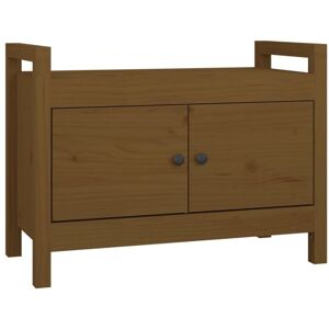 Create a warm and welcoming environment right next to your door with this wooden hall bench! Solid pine wood: This hallway bench is made of solid pine wood. Solid pine wood is a beautiful natural material. Pine wood has a straight grain, and the knots give the material its signature, rustic look. Ample storage: With compartments and doors, this box bench provides ample space to store your clothes, books, shoes, or your personal belongings. Thus, the entryway bench is perfect to keep your hallway, entrance space or other living areas tidy and clutter-free. Stable top: The living room bench has a sturdy top, making it ideal for displaying decorative objects, photo frames, potted plants, etc. The top of the storage bench can also provide a seat for you. Practical design: Thanks to the doors, the shoe storage organiser protects your shoes from dust and keeps them out of sight. Warning: In order to prevent overturning, this product must be used with the wall attachment device provided.