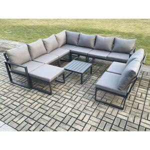 This aluminium outdoor garden furniture sofa set has plenty of space for 10 people to sit, with coffee table to hold food, drinks and more, a perfect addition to your patio, garden, backyard, pool and other indoor and outdoor spaces. Set Dimensions: • 1 x Left Sofa with single armrest: 125W x 70D x 78H cm • 1 x Right Sofa with single armrest: 125W x 70D x 78H cm • 1 x Corner Sofa:70L x 70W x 78H cm • 4 x Armless Sofa Size: 60L x 70W x 78H CM • 1 x Big footstool :60L x 60W x 35H cm • 1 x Square Coffee table : 60L x 60W x 35H cm Dark grey powder coated with dark grey fabric .Color may vary little due to light or monitor .we are unable to return the item due to color problem .please contact us before purchase if you have requirement on color saturation. Items Comes Flat Pack And Easy Assemble, Alloy Aluminium Frame With Powder Coating To Prevent The Rust This Set Was Completely Made By Handmade, Aluminium Table Top Without Glass ,9 CM Thick Seat Cushion With Soft Pillow Back Cushion