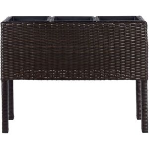 Elevated Garden Bed. An elegant raised planter box, crafted from durable PE rattan, perfect for bringing a touch of modern sophistication to your indoor space, balcony, or terrace. Designed with three convenient plastic inserts, this stylish planter makes it effortlessly easy to display and manage your favourite flowers, while capturing attention with its chic design. Elevate your floral arrangements and effortlessly add a touch of nature to your living spaces with this versatile and eye-catching planter. Details: Product Type: Indoor Plant Pot Style: Rustic General Color: Brown Shade: Dark Brown Material Type: PE Rattan Main Material: PE Rattan Additional Material: Steel Shape: Rectangular Drainage Holes: No Finish: Powder Coated Insert Required: No Max. temperature: 40 Min. temperature: 20 Capacity: 6.5 Dimensions: Depth: 28 cm Width: 77 cm Height: 58 cm Weight: 4 kg Offer Includes: 1 x Elevated Plant Pot Key Features: Modern Patio and Garden Style, Hand-Made Braid Highlights Its