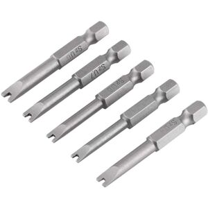 These U-shaped bits are made of high-quality S2 alloy steel, which is the material used has high hardness in the material. With a 1/4 inch hex shank, they are suitable for electric screwdrivers, hand screwdrivers, drills, pneumatic drilling, etc. For this set and make your life easier. Properties These U-shaped bits are made of high-quality S2 alloy steel, which is the material used has high hardness in the material. These bits are magnetic and can be firmly fixed on screwdrivers. The set included 5 U-shaped heads of different sizes, which can meet the requirement at an affordable price. Large scale used, suitable for electric screwdrivers, hand screwdrivers, drills, etc. It is convenient to use electronic device, ideal for electrician, mechanical repair. Specifications: Material: S2 Alloy Steel Head Shape: ‹ Handle: Hex Shank Handle Size: 6.35mm / 1/4" Length: 50mm / 2inch Specification: U4, U5, U6, U7, U8 Is it magnetic: Yes Quantity: 5PCS Dimensions Length(mm) U4 50mm / 2inch U5