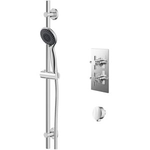 Model Number: WDB10204 Our Cross Polished Chrome Concealed Twin Thermostatic Shower Valve is the perfect addition to any bathroom seeking a traditional feel. This stunning shower valve is designed to be combined with one of our fixed shower heads, which allows you to completely customise the look of your new thermostatic shower. A modern chrome finish and classic cross head design will complement the style of any new bathroom design. Key features Stylish Chrome finish Thermostatically controlled Allow 100mm behind wall for installation Concealed Twin valve