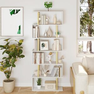 Modern S-shaped Bookshelf Unique Geometric Design makes our bookcase a stylish home office piece. 6-tier vertical storage space satisfies various needs. Works well as a book shelf, display cabinet or room divider in your living room, bedroom, office, hallway, porch... Brayden Studio Colour: White