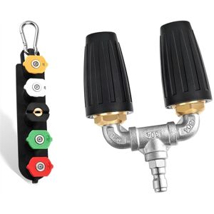 Comprehensive Package: Includes a newly upgraded dual turbo nozzle, a convenient pressure washer nozzle holder, and five different nozzle angles to cater to diverse cleaning scenarios, ensuring you have the right tool for every job. Enhanced Cleaning Efficiency: Featuring two dynamically rotating nozzles, this pressure washer enhances water flow and coverage. The 360° rotation capability delivers meticulous and even cleaning, reaching every corner effortlessly. Construction: Crafted from premium 304 stainless steel, this twin turbo nozzle is built to last. It's complemented by heavy-duty solid brass components, offering exceptional durability and resistance to corrosion. Powerful Performance: Equipped with 2.5-hole twin turbo nozzles, this robust pressure washer operates at 4-6 gallons per minute (GPM) and can handle pressures up to 4000 PSI, making it an indispensable tool for intensive cleaning tasks. Versatile Utility: Ideal for a variety of cleaning tasks, this upgraded nozzle is