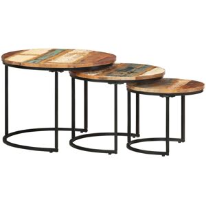 These distinctive and stylish wooden nesting tables, in three different sizes, will definitely make a great addition to your living room, study, hallway, etc. The end tables are handmade from solid reclaimed wood, a combination of reclaimed timbers including teak, mango wood, pinewood, beech, etc. These woods are recycled from old buildings such as factories, sheds and boats. This makes it a fantastic environmentally friendly option in furniture making. As every piece is handmade, colours vary with many blues, greens, creams and sometimes oranges, reds and pinks shades revealed. This even means each one is unique! Additionally, these nesting tables can be stored underneath each other to save space. Please note that wood is a natural product and can show slight imperfections. Colours and grains vary from piece to piece, making each piece unique. The delivery is random as well. Alpen Home
