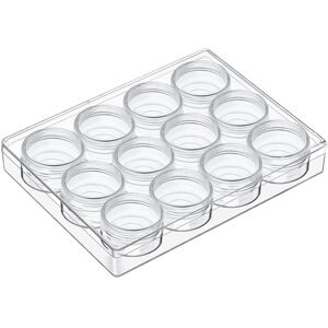 Clear storage system: makes keeping beads and findings organized a snap, also ensures the contents free from dust or rust, keep your small items clean and neat. Size and material: storage jars size is 1.9 x 1.5 x 1.5 Inches, made of clear plastic, and good for find the exact items. Easy to use: transparent and simple design, easy to open and off the lid, good sealing and store goods conveniently, each small jar is and can be taken out and carried at random. Package includes: 12 pieces clear plastic storage containers with screw-on lids, packing in one big plastic box, meed your various types of needs. Wide use: suitable for storing small parts like beads, DIY diamond, glitters, nail crystals, rhinestones, jewelry, necklaces, rings and other small crafts; It can also use as a storage containers. Colour:Transparent Material:Plastic Size:L:1.9 x 1.5 x 1.5 Inches Package Contents: 1 * bead organizer Only the above package content, other products are not included. Note: Light reflection