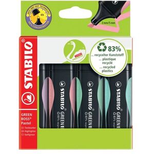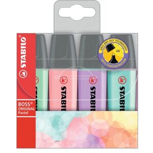 These STABILO BOSS pastel coloured highlighters feature 4 hour anti-dry-out technology and are high quality highlighters ideal for everyday use. This wallet of 4 water based ink highlighters contains one pen in each of the following pastel colours: Blue, Green, Pink and Purple. Each pen has a chiselled tip making them suitable for both thick (5mm) and thin (2mm) highlighting.