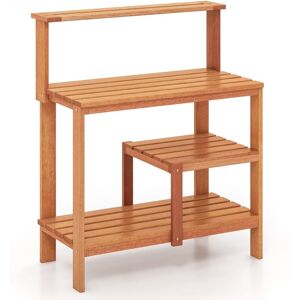 All-in-one garden potting bench table! Crafted from non-deformable and solid fir wood, the versatile garden workbench is built-to-last. The natural finish enhances the aesthetic appeal of the planting table, and the untreated surface offers the flexibility to personalize its look with various paint styles. Therefore, it is an ideal addition to any indoor and outdoor spaces, whether it's a garden, balcony, or patio. Equipped with a top shelf, slatted shelf, and a convenient drawer, the outdoor potting bench provides ample space to organize and store an array of gardening tools and watering cans, ensuring a tidy and efficient workspace. Additionally, the wide countertop ensures that you have enough room to comfortably tackle any gardening task. The ergonomically designed tabletop height promotes comfortable plant care, minimizing strain on your back and knees. Costway Garden Potting Bench Table Wooden Planting Workstation with Trellis in Natural