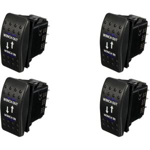 100% Brand New!!! Color: Black Rated: 12V 20A / 24V 10A DC Pin Number: 7 Pins Type: ON - OFF - ON Switch Cutout dimensions are 21mm x 36.83mm (0.83 Inch by 1.45 Inch) Face Size: 49mm x 23mm (0.90 Inch x 1.92 Inch) Black Hard Rocker Engraved Winch Single Upper Light Single Lower Light Upper light is illuminated when switch is pressed Lower light can be wired to separate circuit from dash light IP66 Back barrier between terminals />Wiring diagram is not provided Light color: Red Package Included: 4 x Rocker Switch Only the above package content, other products are not included. Note: Light reflection and different displays may cause the color of the item in a little different from the real thing. The measurement allowed error is +/- 1-3 cm.