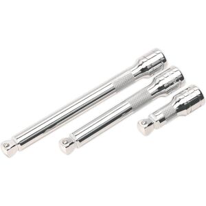 Forged Chrome Vanadium steel shafts, heat treated and chrome plated with mirror finish. Cut-away tips allow sockets to be driven with shaft offset of up to 10°. Deep knurling on shafts allow extra grip when spinning off fixings. Spring-ball socket retainers. Features & Benefits: • Forged Chrome Vanadium steel shafts, heat treated and chrome plated with mirror finish. • Cut-away tips allow sockets to be driven with shaft offset of up to 10°. • Deep knurling on shafts allow extra grip when spinning off fixings. • Spring-ball socket retainers. • Sizes: 75, 150, 200mm. • Lifetime guarantee*. • Model No. AK764 Specifications: Model No AK764 Brand: Premier Drive: 1/2"Sq Length: 75, 150, 200mm Material: Chrome Vanadium Nett Weight: 0.71kg