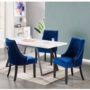Pn Home - Toga lux Windsor Dining Set - a White Extendable Dining Table and Set of 4 Blue Velvet Dining Chairs - Dining Room Kitchen
