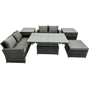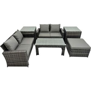 Transform your outdoor space into a stylish oasis with this deluxe PE rattan sofa set expertly crafted for durability, comfort, and timeless elegance. Perfect for hosting guests or unwinding under the sun! > Premium Quality Construction All-Weather PE Rattan: UV-resistant, non-fading woven wicker withstands sun, rain, and temperature changes. Rust-Proof Galvanized Steel Frame: Powder-coated for enhanced corrosion resistance and long-term stability. Industrial-Grade Weight Capacity: Sofas support up to 250kg, tables hold 80kg built for reliability. Ergonomic Comfort Features Ultra-Plush Cushions: 8cm thick seat cushions + soft backrests with removable, machine-washable covers (dark grey premium fabric). 5mm Tempered Glass Tabletop: Anti-slip suction pads ensure safety; scratch-resistant surface. Set dimensions: 2 x Love Sofa Size: 124W x 67D x 79H cm 1 x Oversized Footstool: 65L x 65W x 34H cm 1 x Dining Table: 110L x 70W x 70H cm Hassle-Free Assembly & Maintenance Flat-Pack Delivery: Easy-to-follow instructions with numbered parts. Low Maintenance: Wipe rattan with damp cloth; store cushions indoors or use included rain covers during off-seasons. Modular Design: Rearrange components effortlessly to suit your space. Important Notes Color: Light grey rattan + dark grey fabric (minor monitor color variations possible contact us for fabric samples). Delivery: Curbside drop-off only; inspect packages before signing. Report damages immediately for free replacements. Weather Protection: Use provided rain covers for long-term outdoor storage. Fimous 5 Seat Outdoor Love Sofa Set Rattan Garden Furniture Set in Light Grey