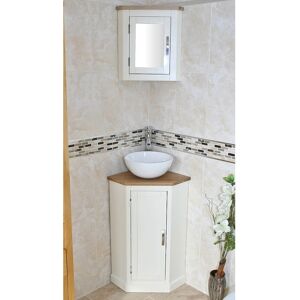 This is an stunning handcrafted solid oak bathroom freestanding corner vanity unit with a single cupboard with a height-adjustable central shelf. This unit comes complete with an undrilled worktop, a matching solid oak mirrored top cabinet, a basin, a chromed mixer tap with braided connectors, and a chromed pop-up plug. Belfry Bathroom Base Finish: Oak