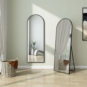 This Large Black Framed Arched Wall Mirror 92cm x 91cm is a simple stylish wall mountable thin framed mirror perfect for fans of minimal design. Made of resin glass and wood this mirror has a curved arch design and comes with a black finish. It can be wall mounted via t-hook style wall mountings on the back of the mirror. The perfect statement mirror for mounting above a mantlepiece console table or vanity. Due to its larger sized design and neutral black finish this mirror could be placed in modern retro or country themed interiors. This mirror is also available in Gold. Part of a large range of arch shaped mirrors available in a wide selection of colours sizes and finishes. Are you looking for similar items? Browse our full Arched Mirrors category for more ideas. Colour: Black Finish: Matte Material(s): Resin glass wood 92cm x 91cm x 3cm (width x height x depth) Fully assembled Can be wall mounted vertical