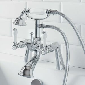 The Aquari Winchester bath shower mixer tap features gorgeous traditional styling and smooth surfaces, which combine to make a great impact on any traditional bathroom. They are a fantastic solution to all of your bathing needs. Features and Benefits: The polished chrome and white ceramic finishes will look great in any style of bathroom. Easy to use twin lever tap with one lever to control the flow of the hot water, the other the cold. A diverter lets you easily switch between the taps and the included shower head. Solid brass build for durability and a long life. Reliable ceramic cartridge for long lasting reliability and a smoother quarter-turn action. Pair with other gorgeous Winchester bathroom taps. Fantastic 10 year guarantee for complete peace of mind. Technical Specifications: Flow Rates (l/min): 0.5 bar – 7.8 / 1.0 bar – 10.7 / 3.0 bar – 18.1 Inlet Connection Size: G3/4 Dimensions: 180mm (W) x 283mm (H) x 204mm (D)