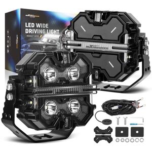 Application Universal Driving Auxiliary Light For Sport Utility、4WD 4X4、Mining、Marine、Car、excavator Pickup、Wagon、UTB、Cab、ATV、SUV、Boat、Bus Tractor、UTE、Van Camper、Road Roller、Bulldozer、Crane Pls Note Wiring harness Relay is 12V Only,Not For Truck Specification Size: 5inch Light Color: White Shell Color: Glossy Black Mode: Main Light + RGB Background Light + DRL (Amber & White) Shape: Square Housing Material: Aluminum Lens Material: PC Bracket Material: Stainless Steel Light Source Type: LED Theoretical Power:212W/pair Ingress Protection:IP68 Beam Pattern: Spot Beam & Side Shooter Color Temperature: White 6000K、Amber 3000K Working Voltage:12V Product Series: Crosshair Lumens: 25440 LM (Theoretical data) Lighting Distance: 0.25lux at 630m (Theoretical data) Life Time: 50000+ hours Beam type: Comprehensive 270-Degree Beam Pattern Package includes 2* LED Pod Light 1* Wiring Harness 2* Sets of Mounting Accessories and Brackets 1* Product Manual Feature *Employ industry-leading LED
