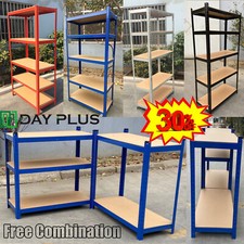 Heavy duty 5 tier boltless shelving unitis storage rack for homes and business. Suitable for Garage, Utility Room, Warehouse, Workshop, Shops, Storage, Shed, Kitchens. This racking unit is sturdy and durable. It features five solid MDF shelves which are adjustable, moulded feet and can also be split to make two different units, a bench or a corner unit. Boltless design. Easy to assemble as no screws or bolts are used. Please note that each shelf has a maximum capacity of 175 Kgs, totally 875kgs. Features: - These stock shelves are ideal as only a rubber mallet or a hammer may be needed so even the novice at DIY can build these (But this item not include rubber mallet). - The Steel frame is made from heavy duty steel and has been powder-coated to give it the extra special look. - Cleaning Instructions : Wipe With A Dry Cloth. - Adjustable shelf height & layout. - Boltless design for quick, easy assembly. - Storage racking & shelving units are ideal for use in garages, sheds,
