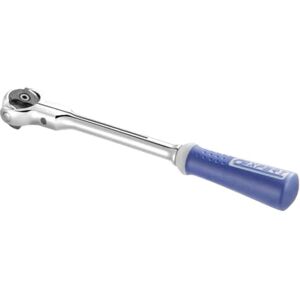 The Expert E032802B 1/2 inch swivel head reversible ratchet has a 72 tooth mechanism and a 5° increment. The ratchet has an ergonomic bi-material handle for comfort and the compact head is finished in high chrome. Dimensions:Length: 306mm.Weight: 640g. ISO 3315, DIN 3122, ISO 1174-1.