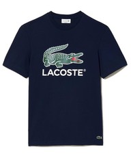 Mens Lacoste Printed Cotton Jersey T-Shirt in limestone - falcon Fashion meets sportswear in this T-shirt the fruit of 90 years of Lacoste creative expertise. Made from comfortable cotton jersey with a large stencil-style print featuring our brand signatures. Finished with sophisticated details including an embroidered crocodile on the back.- Organic cotton jersey - Classic fit for natural ease - Stencil effect pigment print on chest with crocodile and Lacoste branding - Embroidered crocodile on back - Shell: 100% Cotton. Machine washable. - Ref: TH0284-CUN