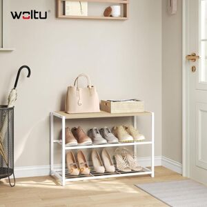 Durable Shoe Rack:2 tiers Shoe bench made of wood and steel offers high stability and extends the life Save Space: 63x30x43cm (W x D x H); Height of each level: 18.5/17.5cm, for up to about 3 pairs of feminine shoes per level Shoe Bench with Seat: with wood seat, you could change your shoe rack easily, great for kids to sit to change shoes(20 kgs),(not including adults) Load Capacity of Top Seat: 20 kgs. load capacity of shelves is 5 kgs. Shoe Rack:Practical and easy-care: ideal for hallway, bathroom, living room, balcony, cellar, children's room, bedroom. Easy to Assemble: with supplied screw you can easily build and dismantle WOLTU Shoe Rack Stand Storage Bench with Seat WOLTU Durable Shoes Bench 2 Tiers Shoes Rack Storage Wooden Metal Hallway with Seat Cushion ●Durable Shoe Rack: 2 tiers Shoe bench made of wood and steel offers high stability and extends the life ●Save Space: 63x30x43cm (W x D x H); Height of each level: 18.5/17.5cm, for up to about 3 pairs of feminine shoes per