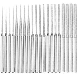 [Details] Including 5 different shapes: 1.5 mm cone, 3.0 mm cone, 1 mm cylinder, 2 mm cylindrical and 3mm cylindrical [Size] Handle diameter: 3mm (1/8 inches), grinding length: 30mm, total length: 70mm [Application] Suitable for drilling, expanding stones, glass, ceramics, jewelry, etc. [Reminder] In order to use it for a long time, please use the lubricant when using all diamond coating tools Colour:Silver Material:Metal Package Contents: 1set x diamond drill bits Only the above package content, other products are not included. Note: Light reflection and different displays may cause the color of the item in the picture a little different from the real thing. The measurement allowed error is +/- 1-3cm.