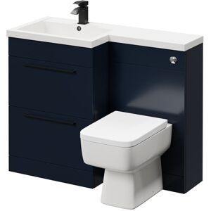Model Number: WDB91452 Tired of your lackluster bathroom lacking style and organisation? Say hello to the Napoli Combination Deep Blue 1100mm Vanity Unit Toilet Suite with Right Hand L Shaped 1 Tap Hole Basin and 2 Drawers with Gun Metal Grey Handles. Embrace the transformation as your bathroom exudes elegance and functionality, all wrapped up in a deep blue allure. With high-quality ceramic toilet and soft closing features, this set ensures a serene ambiance and effortless storage. The basin's pre-drilled tap hole adds convenience and style, while the gunmetal grey handles provide a touch of sophistication. The basin taps are not included so be sure to pick your favourite! This compact bathroom suite is the perfect way to add a mysterious pop of colour that is striking while making use of every inch of space. Order yours now and enjoy free delivery on orders over £500! Key features High quality ceramic toilet Soft closing toilet seat Soft closing drawers Basin comes with one