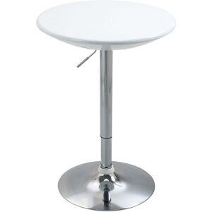 This bar table from HOMCOM is crafted exquisitely to match the elegance of your stylish dining room, kitchen, bar, or patio. The round ABS spray-painting tabletop is water resistant and easy to clean, consistently displaying a sense of modern style and class. With a simple pneumatic gas rod, this table can be adjusted to accommodate either seated or standing guests depending on the situation or setting, while the convenient 360 degree top swivels adds even more function to fashionable form. Specifications: ● Colour: White ● Material: Steel, ABS Painting Covering ● Weight Capacity: 80 kg ● Overall Dimension: 61L x 61W x 76-97H cm ● Height Adjustment: 76-97H cm ● Table Thickness: 11 cm ● Top Diameter: 61 cm ● Base Diameter: 45 cm ● Item Label: 835-505WT Features: - Pneumatic lift mechanism allows height adjustment from 76 cm- 97 cm - ABS painted tabletop covering for easy to clean, just wipe with a damp cloth - Silver steel frame and disc base offer reliable stability - 360-degree