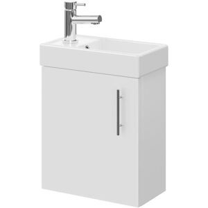 Model Number: WDB10505 Our Compact Gloss White 400mm Floor Standing Vanity Unit and Basin with 1 Tap Hole is the ideal selection for small bathrooms or cloakrooms. Its clever space saving design provides a sophisticated and attractive unit with the added bonus of valuable storage space with one internal shelf to help keep those bathroom products at bay. A striking chrome handle creates a modern feel as does its advanced soft close technology. Featuring a high quality ceramic basin and gloss white basin unit that is steam resistant and repels condensation for a long lasting and glamorous finish. Key features Ceramic Basin Chrome Handle Single Cupboard Soft Closing Mechanism Pre Assembled Comes complete with wall brackets