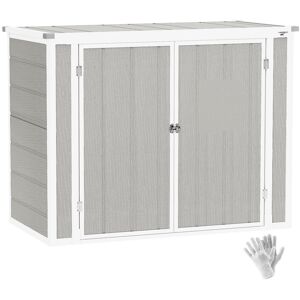 Feature: Neatly stores two 240L bins, gardening tools and more Pneumatic lifting lid for easy opening and closing Chain hook links to bin lid for effortless disposal Doors feature latches for secure locking Constructed from polypropylene board, waterproof and UV resistant Aluminium reinforcement ensures robust build quality Assembly required Specification: Colour: Grey Material: Polypropylene, Aluminium Overall Dimension: 143W x 75.5D x 110/108.5Hcm Inner Size: 130W x 61.5Dcm Lid Size: 143W x 75.5Dcm Maximum Opening Height: 167cm Door Size: 109W x 100.5Hcm Bottom Size: 138W x 70.5Dcm, 0.97㎡ Suggested Single Bin Size: Max. 240L Snow Load Capacity: 40kg/㎡ Item Label: 84H-205V00GY 1 x Storage Shed A Pair of Gloves 1 x Manual