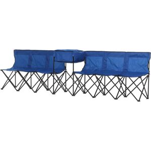Keep multiple people seated during outdoor trips, BBQsand festivals with this Outsunny folding bench. The strong steel frame supports a 306cm design with six Oxford cloth seats (44cm x 41cm each) for comfortable sitting. Cross-over legs ensure stability, while its foldable, lightweight build makes it easy to carry and store. A built-in cooler box keeps drinks and snacks chilled—great for enjoying leisure time with friends. Specifications: • Item Name: 6 Seat Camping Folding Bench • Brand Name: Outsunny • Colour: Black • Material: Steel, Oxford • Overall Dimension: 306L x 48D x 82H cm • Folded Dimension: 55L x 18W x 82H cm • Seat Dimension (each): 44W x 41D cm • Cooler Bag Dimension: 45L x 43W x 20H cm • Seat Height: 41cm • Weight Capacity: 114kg (per seat), 10kg(cooler bag) • Flat Pack: Yes • Custom Label: 84B-382BK Features: • 6-in-1 seat design, ideal for taking on camping trips, BBQs, picnics and festivals etc. • Strong and durable metal frame for reliable support, with cross-over