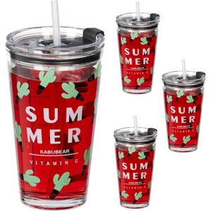 The children's drinking glass set enchants with its cool space motifs and is as cute as it is practical. The glasses have lids and straws and are therefore also particularly suitable for taking along. If you don't want to drink with a straw, simply use the separate drinking opening in the lid, which - just like the straw opening - can also be easily closed. After use, the glass cups can be cleaned in the dishwasher. Glass Cups in Detail - Dimensions with lid H x W x D: approx. 15 x 9 x 9.5 cm - Volume: approx. 450 ml - Weight: approx. 420 g - Material: Glass, ABS, silicone - Colour: Transparent, grey, white Further Information - Set of 4 Cups - For temperatures between -20 and 100°C - Maximum temperature difference is 38°C - Glasses without lid and straw are microwaveable Space Glass with Lid and Straw - Cute space motif is perfect for children - For water, juice, tea, soda and many other drinks - Lid with opening for straw and extra drinking hole - Use without lid as a simple glass