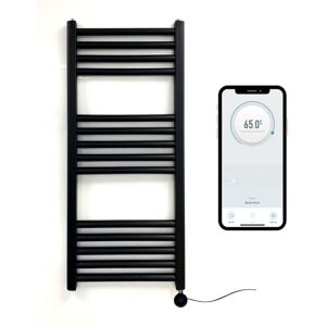 Manissa - Black Electric Smart WiFi Controlled Heated Towel Rail 300mm w x 800mm h Straight 7 Day Programmable Timer App Compatibility