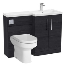 Perfect for cloakrooms, ensuites and smaller bathrooms, this floor standing combination unit has ample storage for the bathroom essentials. In a matching finish, the WC unit and vanity basin unit with basin and worktop is an elegant and modern furniture unit. Available both left and right handed to fit with your bathroom layout. Manufactured from high quality materials in a solace oak finish. With soft close doors to prevent slamming. Matching units available for a matching bathroom design. Tap, waste, concealed cistern and back to wall toilet pan not included. Balterley Vanity Basin & WC Unit Left Hand Solace Oak 1100mm x 390mm in Brown